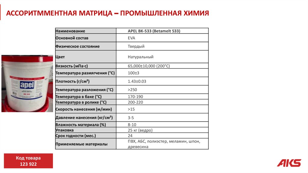 АССОРИТММЕНТНАЯ МАТРИЦА – ПРОМЫШЛЕННАЯ ХИМИЯКод товара