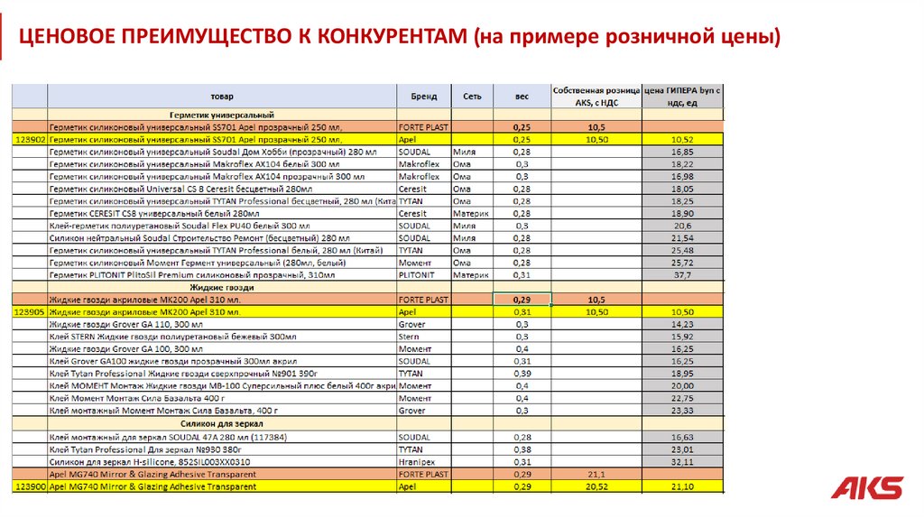 ЦЕНОВОЕ ПРЕИМУЩЕСТВО К КОНКУРЕНТАМ (на примере розничной цены)25.