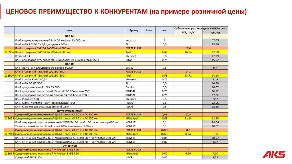 ЦЕНОВОЕ ПРЕИМУЩЕСТВО К КОНКУРЕНТАМ (на примере розничной цены)26.