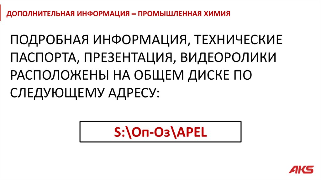 ДОПОЛНИТЕЛЬНАЯ ИНФОРМАЦИЯ – ПРОМЫШЛЕННАЯ ХИМИЯПОДРОБНАЯ ИНФОРМАЦИЯ, ТЕХНИЧЕСКИЕ