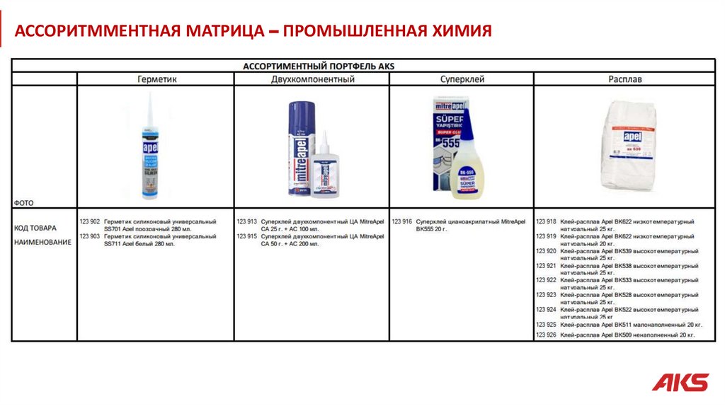 АССОРИТММЕНТНАЯ МАТРИЦА – ПРОМЫШЛЕННАЯ ХИМИЯ5.