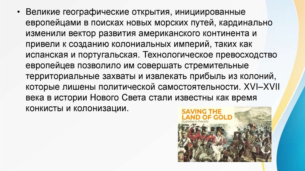 исследованиям, которые открыли новые торговые пути и Индию. Основные