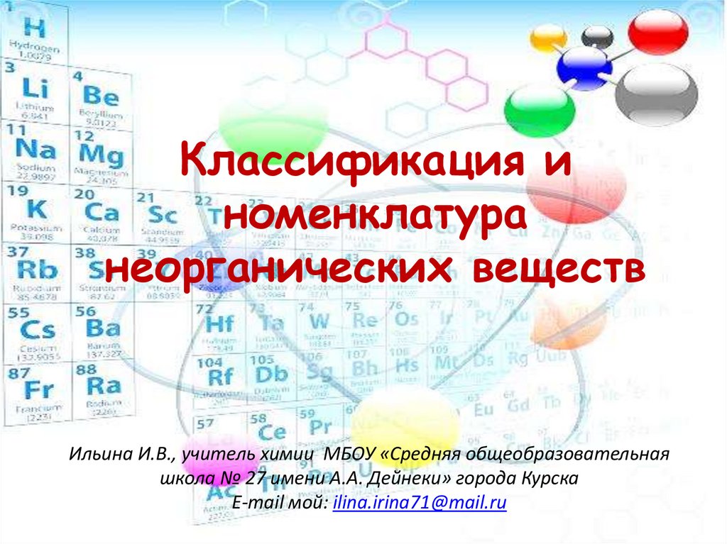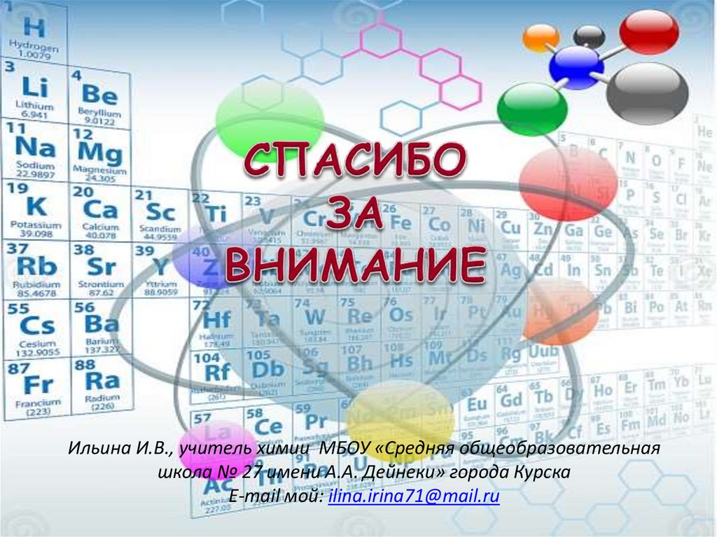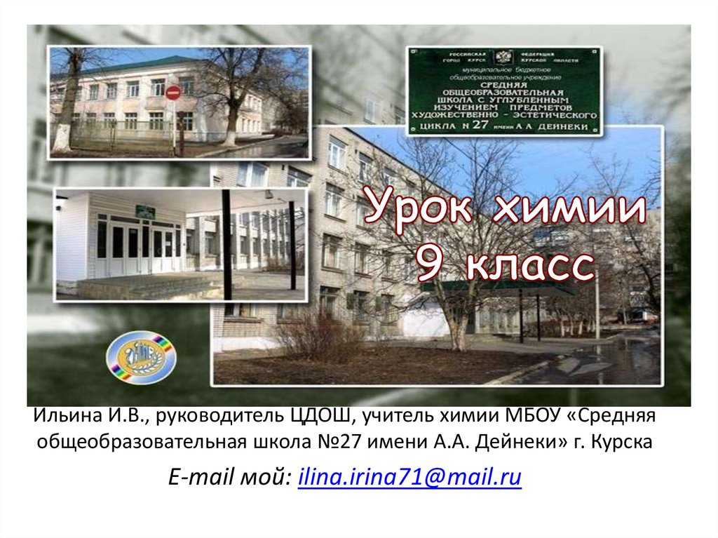 Ильина И.В., учитель химии МБОУ «Средняя общеобразовательнаяшкола № 27 имени А.А. Дейнеки» города Курска
