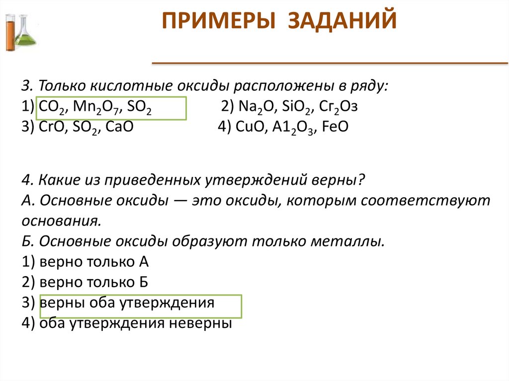 ПРИМЕРЫ ЗАДАНИЙ3. Только кислотные оксиды расположены в ряду: