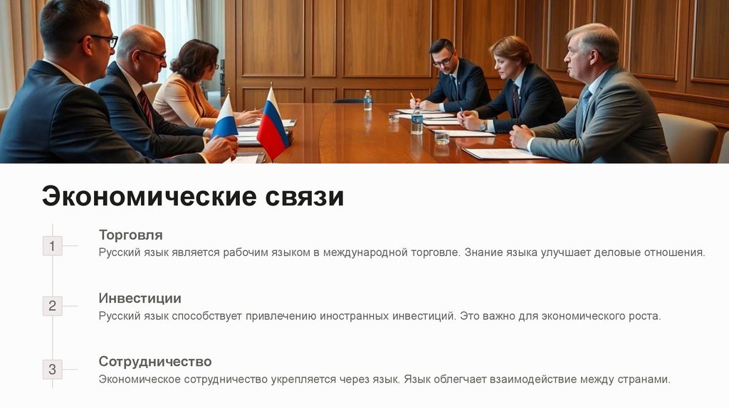 Русский язык способствует привлечению иностранных инвестиций. Это важно для экономического роста.