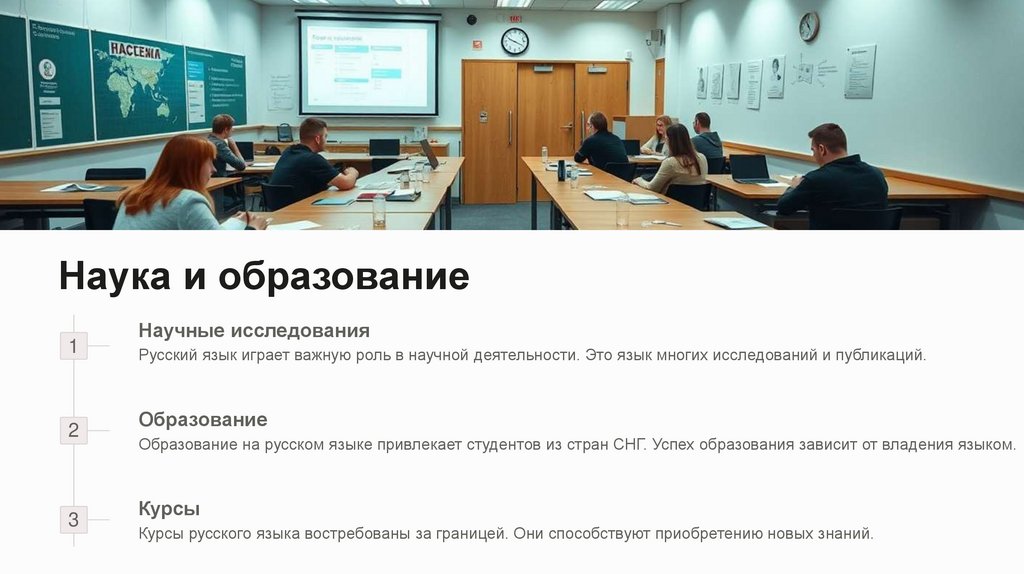 Русский язык играет важную роль в научной деятельности. Это язык многих исследований и публикаций.