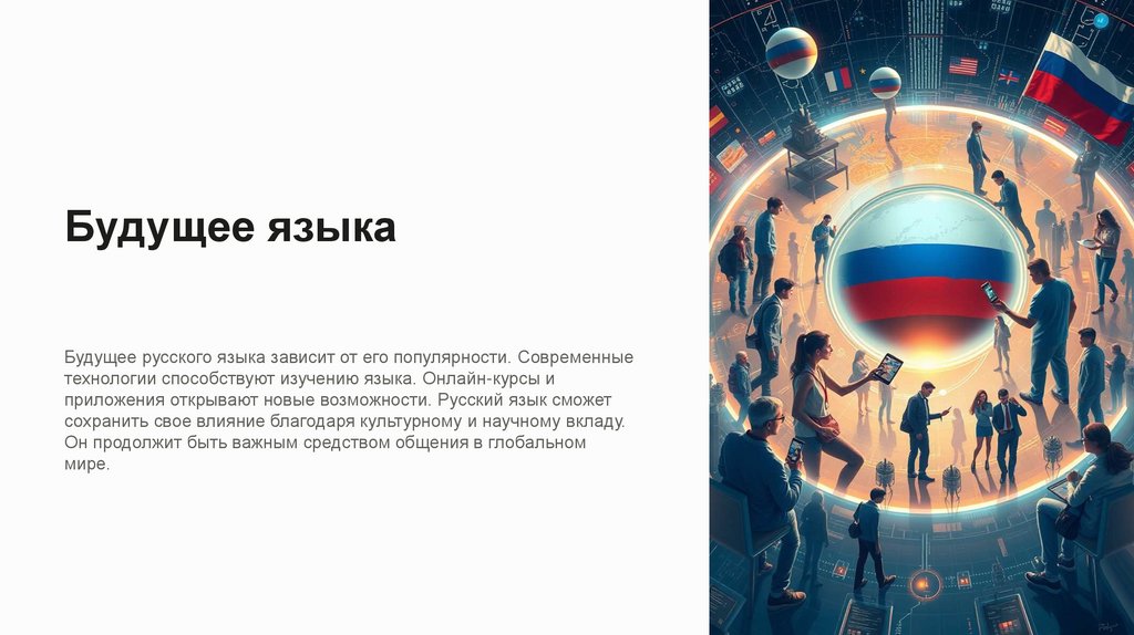 Будущее языкаБудущее русского языка зависит от его популярности. Современные