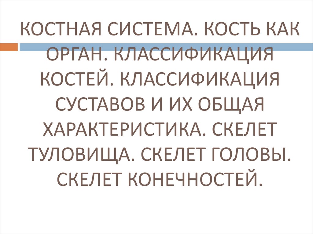 КОСТНАЯ СИСТЕМА. КОСТЬ КАКОРГАН. КЛАССИФИКАЦИЯ