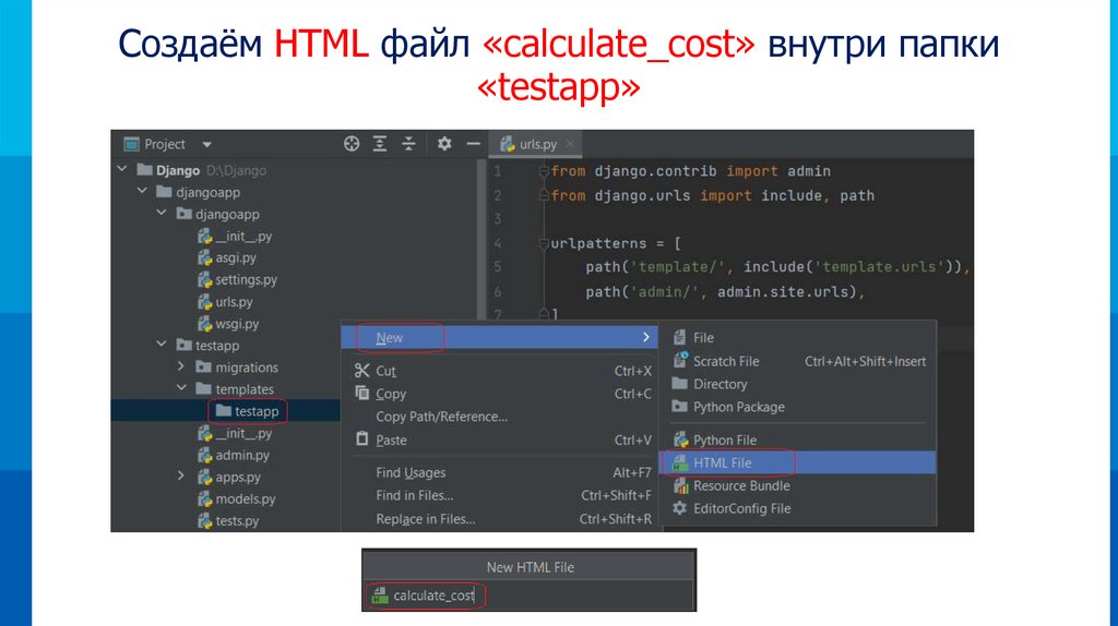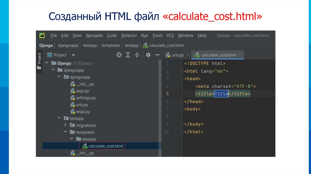 Создаём HTML файл «calculate_cost» внутри папки«testapp»