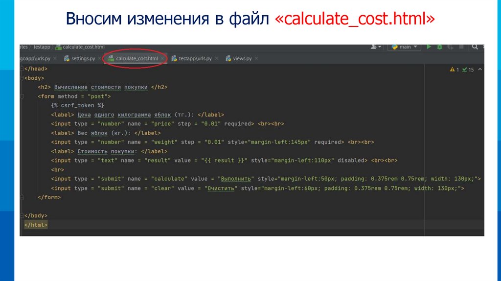 Вносим изменения в файл «calculate_cost.html»32.