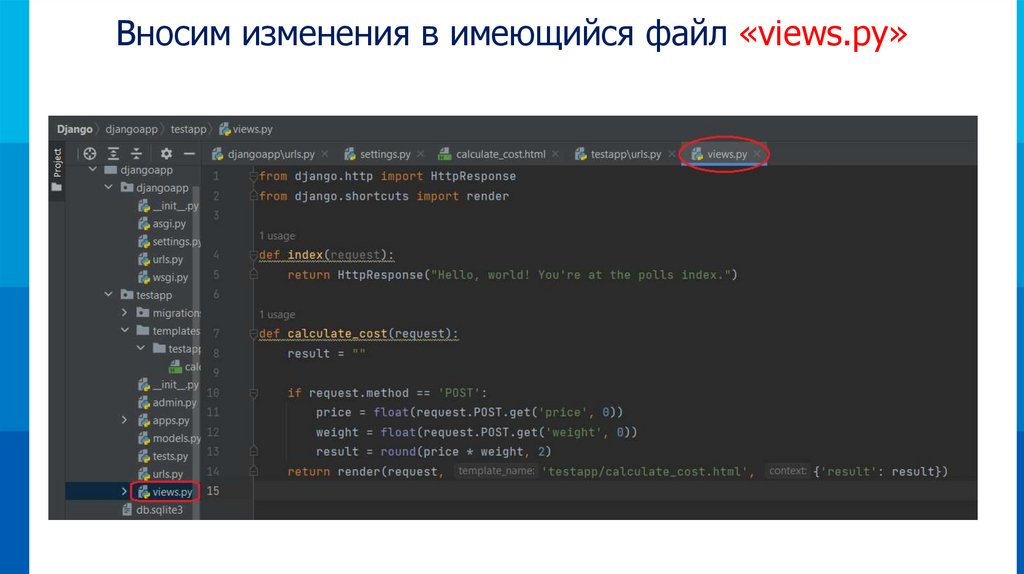 Вносим изменения в имеющийся файл «views.py»35.