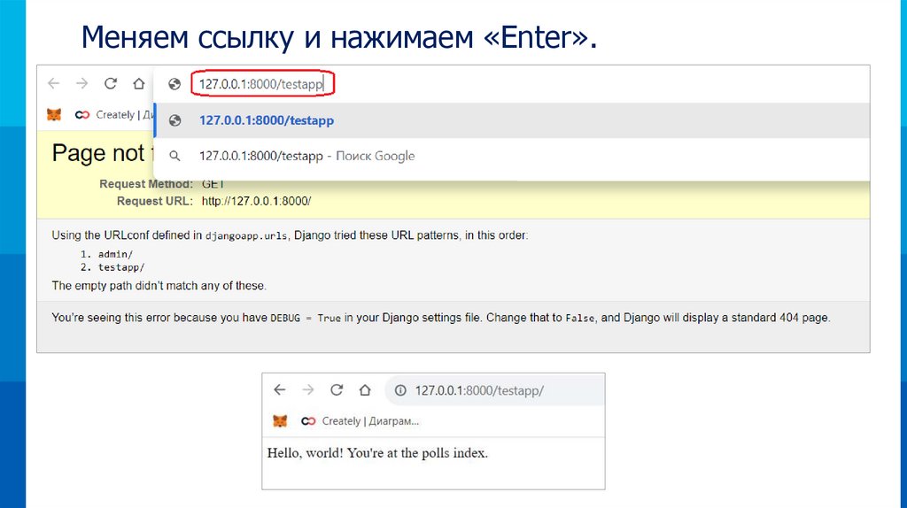 Вносим изменения в файл «urls.py»34.