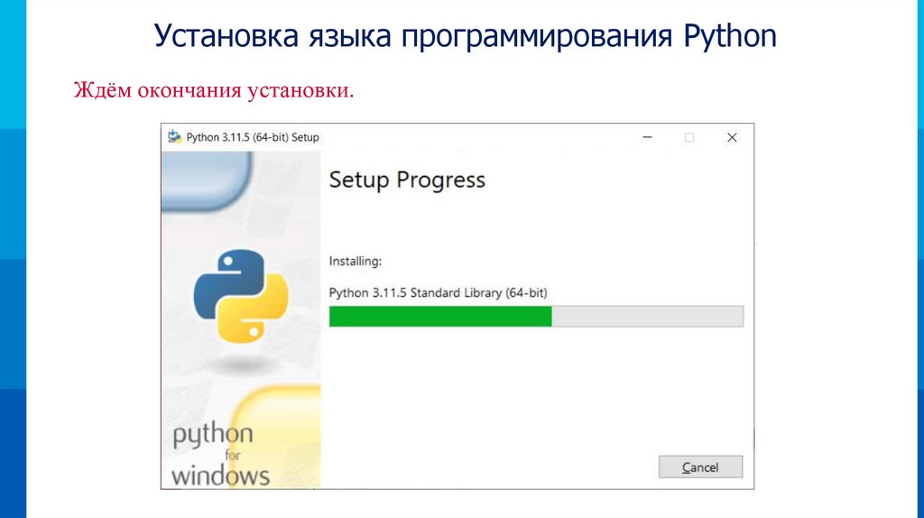 Установка языка программирования PythonЖдём окончания установки.