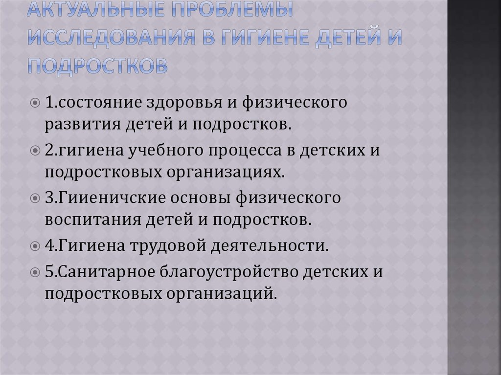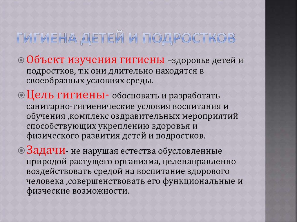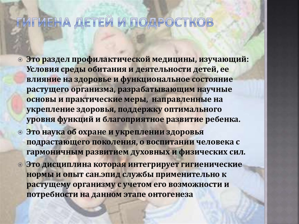 Объектизучения гигиены –здоровье детей и
