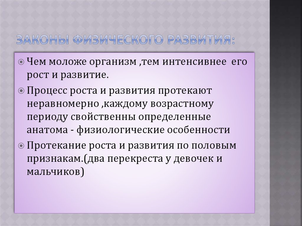 растущему организму с учетом его возможности и