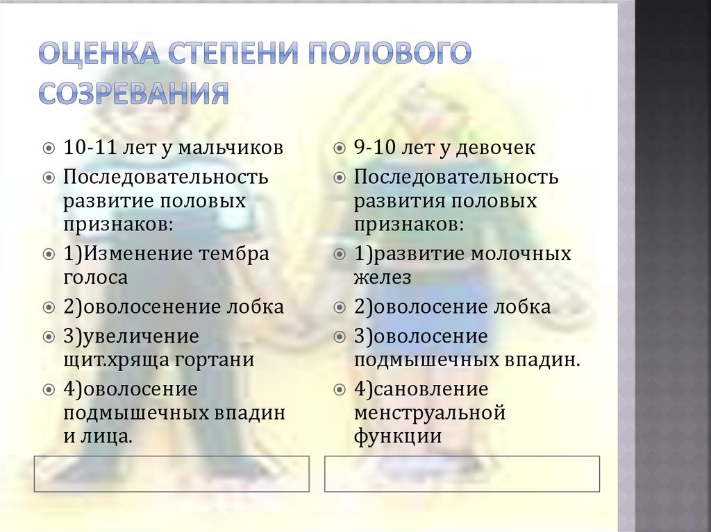 по степени развития вторичных половых признаков и сроку