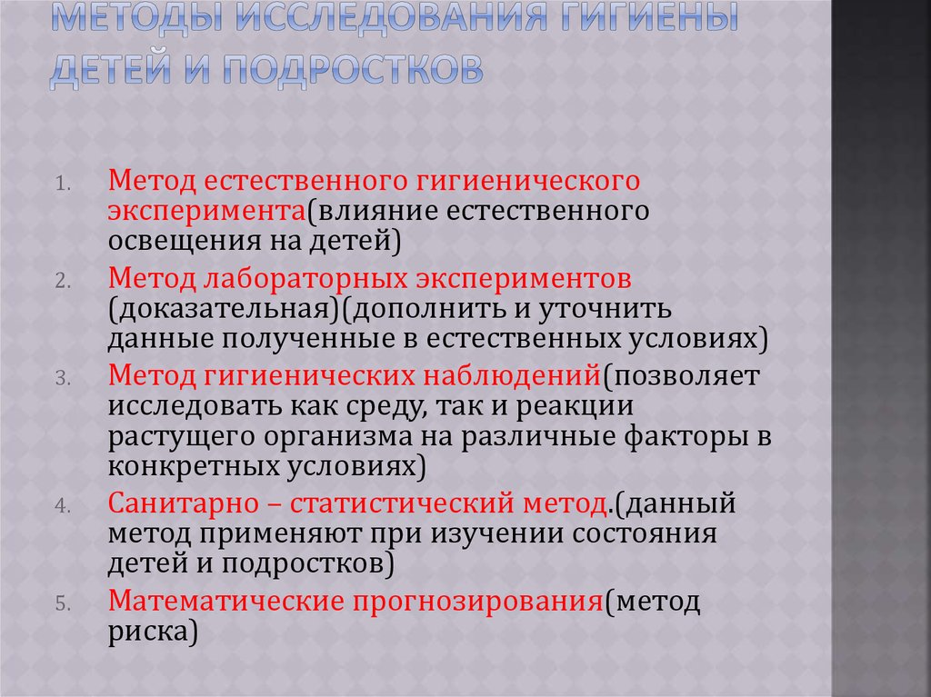 Метод гигиенических наблюдений(позволяет