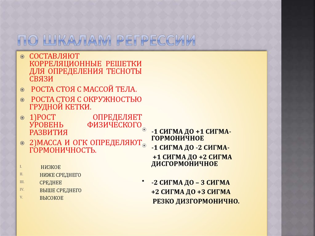 организма с использованием шкал регрессии и возрастных