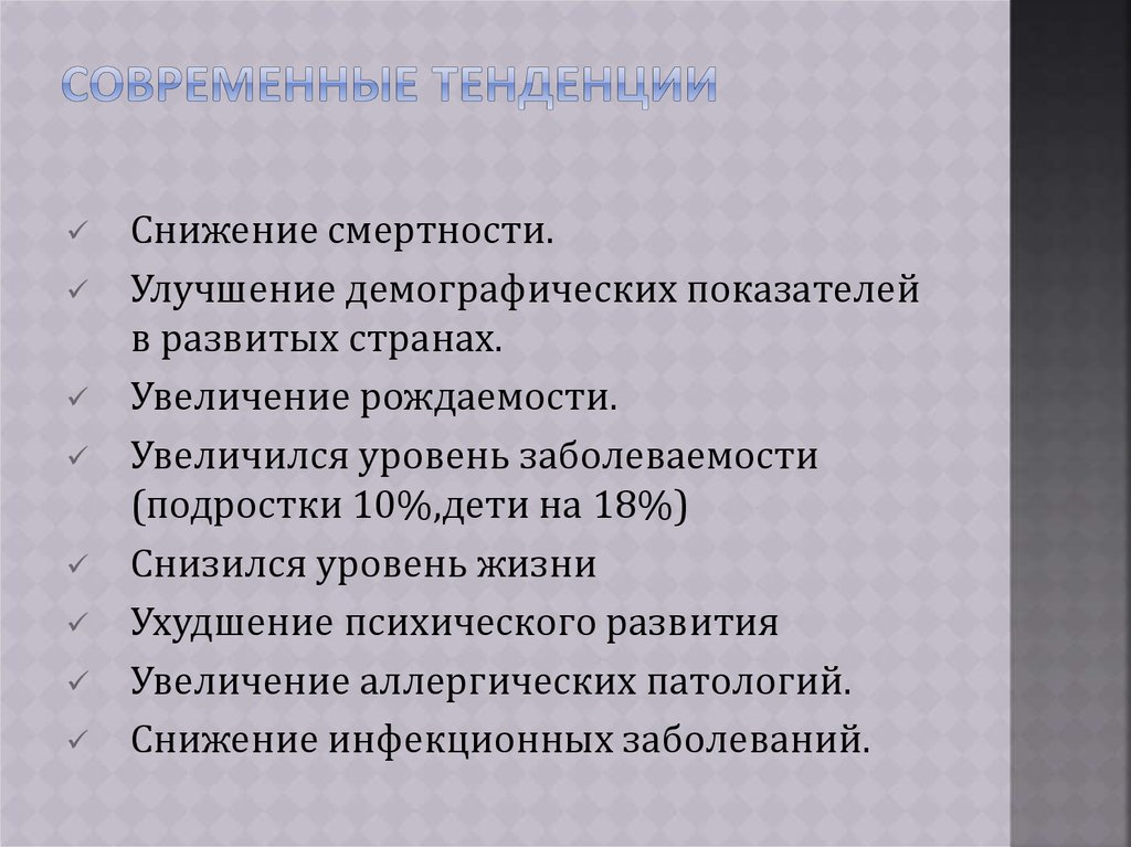 Снижение смертности.Улучшение демографических показателей