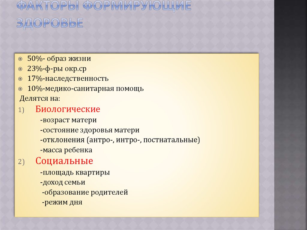 50%- образ жизни23%-ф-ры окр.ср