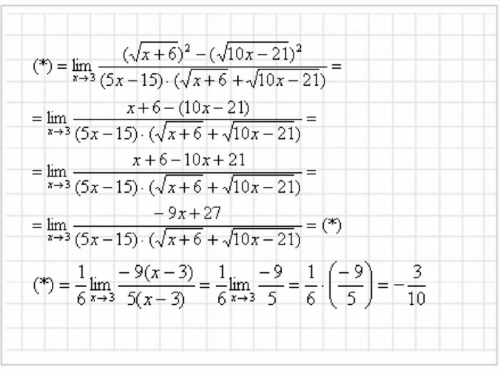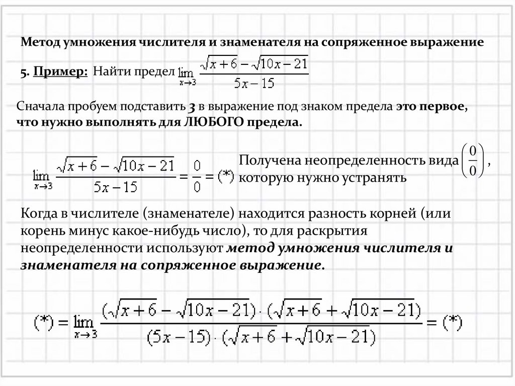 Метод умножения числителя и знаменателя на сопряженное выражение5. Пример: Найти предел