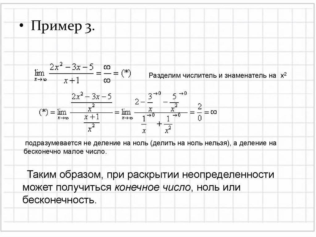 • Для того, чтобы раскрытьнеопределенность ∞/∞ необходимо