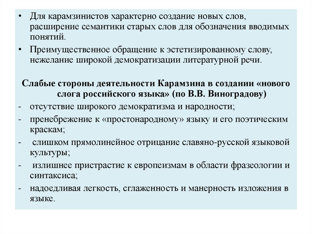 Слабые стороны деятельности Карамзина в создании «нового