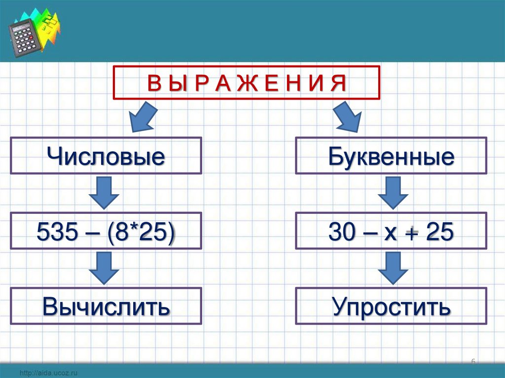 • Числовые выражения состоят из…чисел и знаков арифметических действий