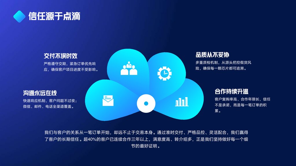 验 致力于为客户提供优质元器件与专业服务 业务覆盖国内现货、跨境电商及
