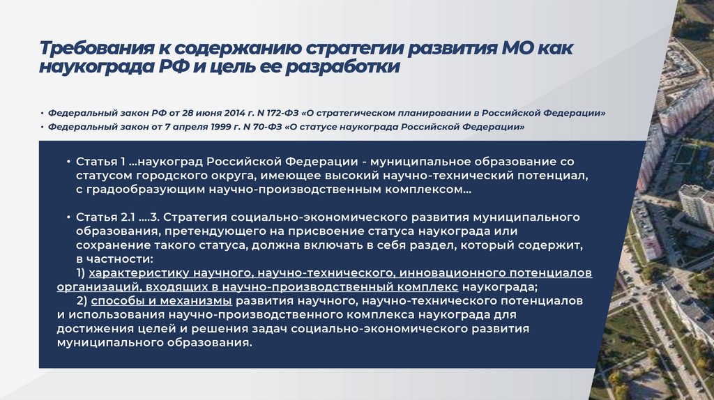 Требования к содержанию стратегии развития МО какнаукограда РФ и цель ее разработки