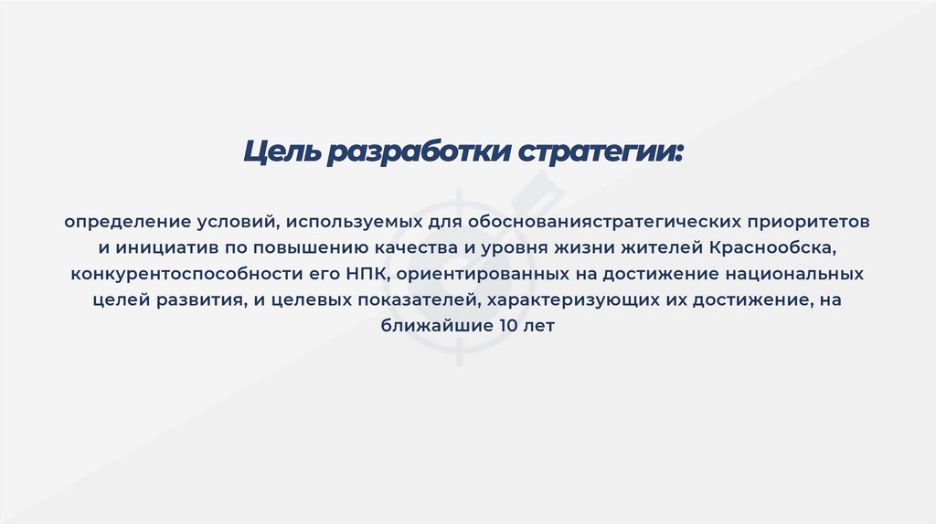 Цель разработки стратегии:определение условий, используемых для обоснованиястратегических приоритетов