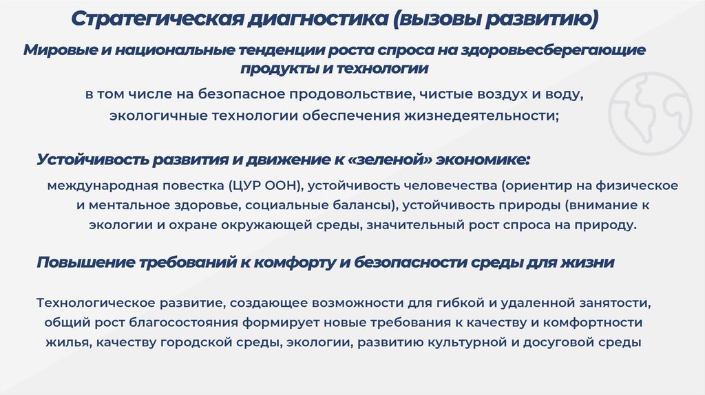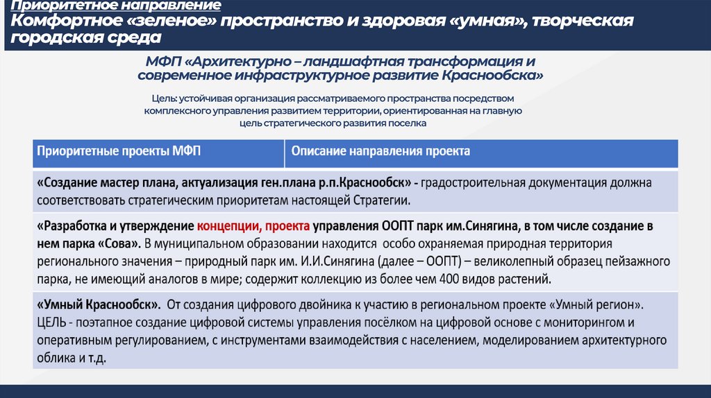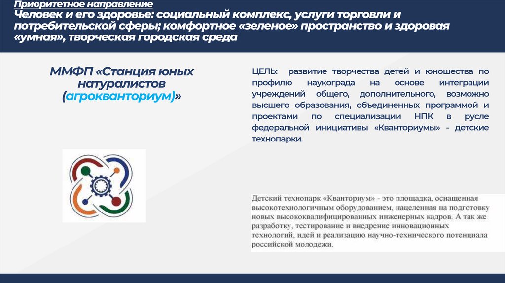потребительской сферы; комфортное «зеленое» пространство и здоровая