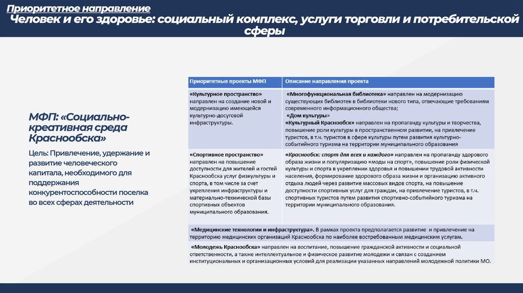 Приоритетное направлениеЧеловек и его здоровье: социальный комплекс, услуги торговли и