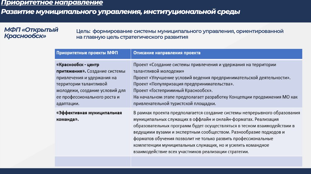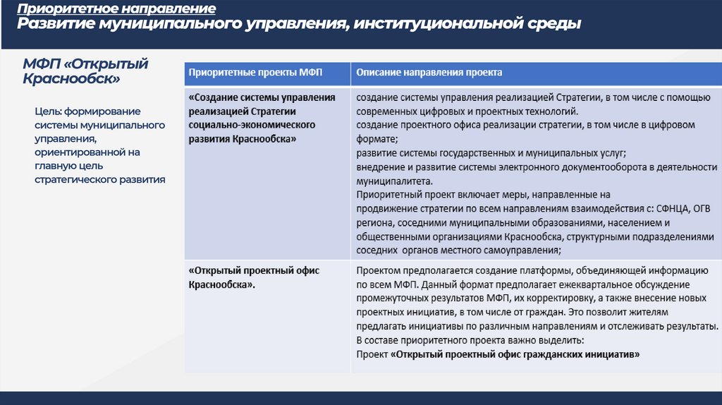 Приоритетное направлениеРазвитие муниципального управления, институциональной среды