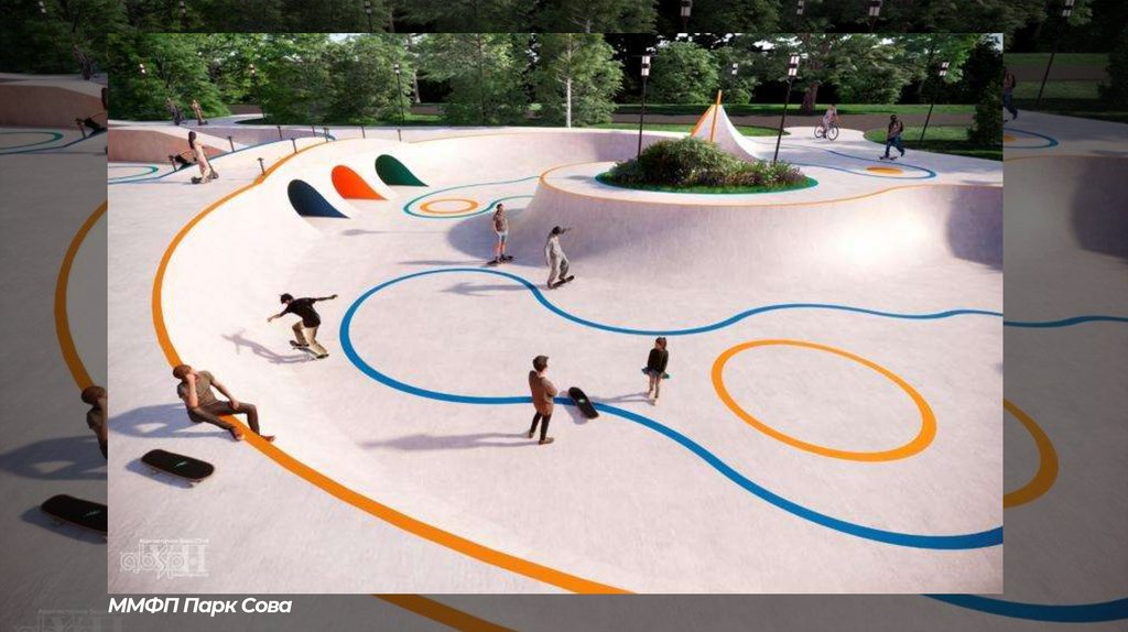 трасса (лето) и каток (зима), скейт парк и т.д.;
