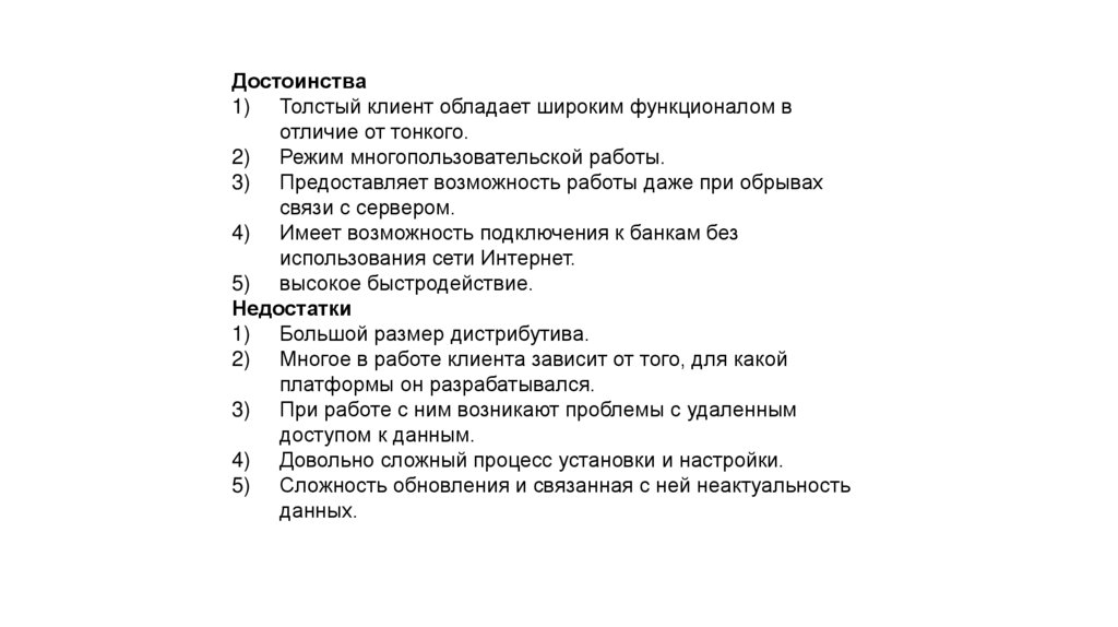 Достоинства1) Толстый клиент обладает широким функционалом в