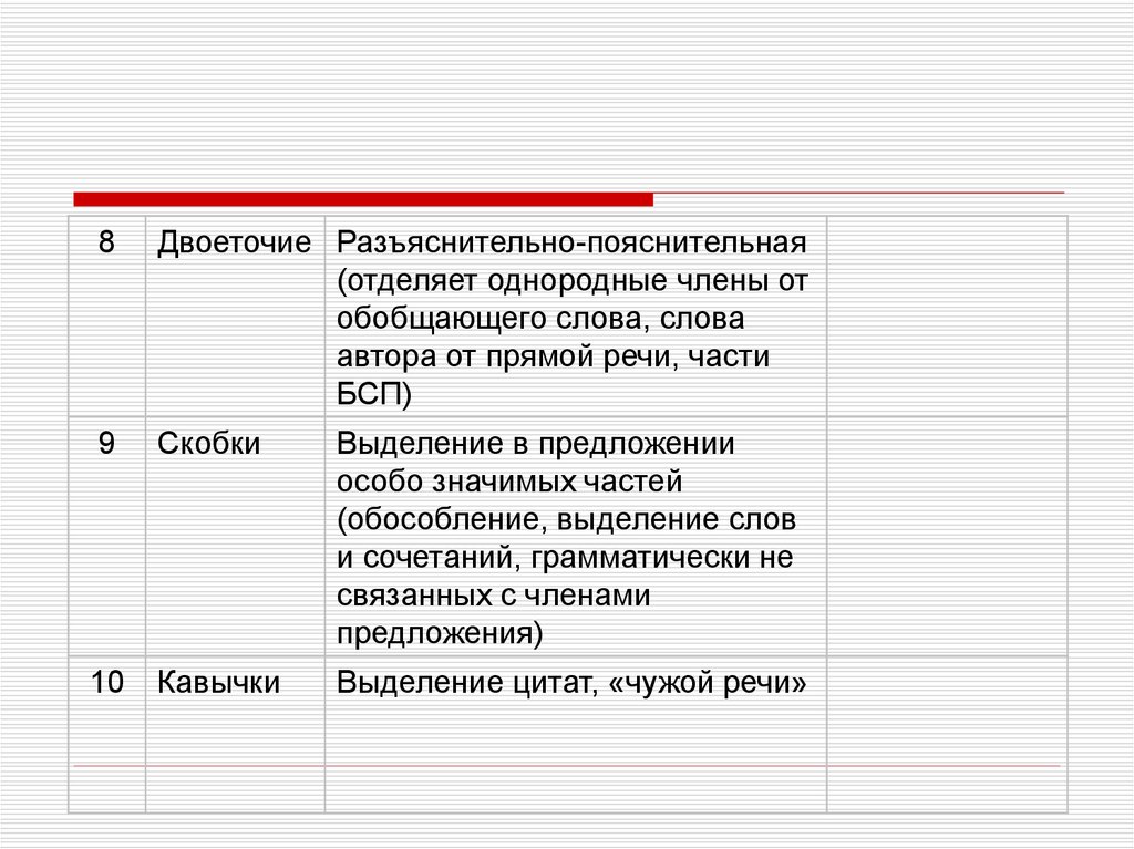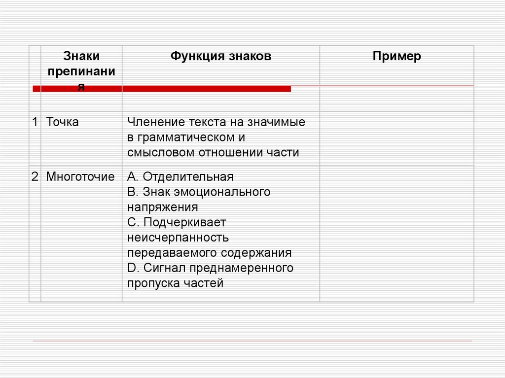 1) продолжите заполнение таблицы«Функции знаков препинания»,