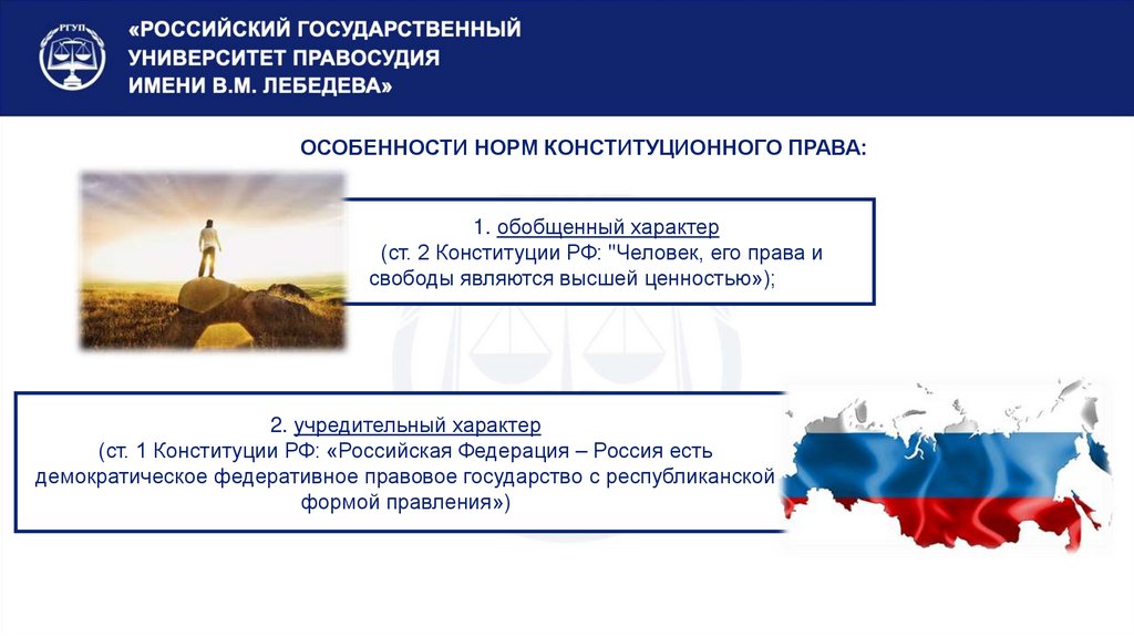 ОСОБЕННОСТИ НОРМ КОНСТИТУЦИОННОГО ПРАВА:1. обобщенный характер