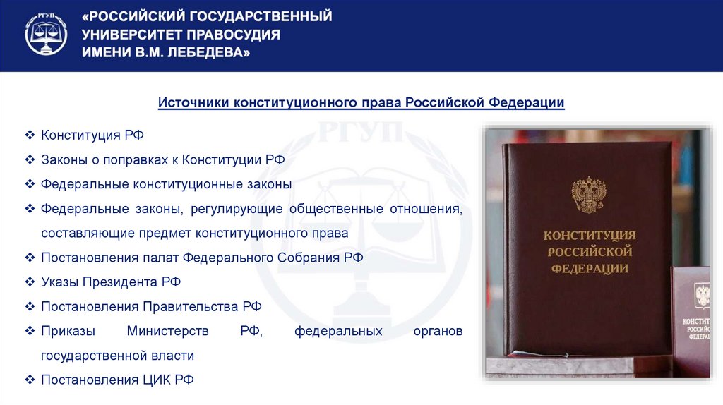 Источники конституционного права Российской ФедерацииКонституция РФ