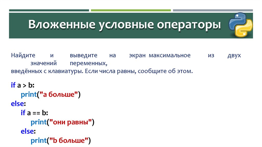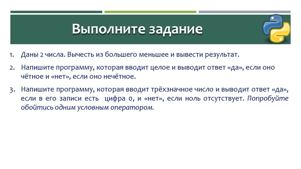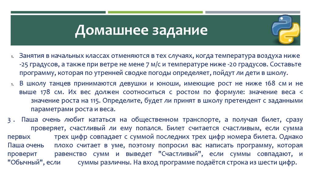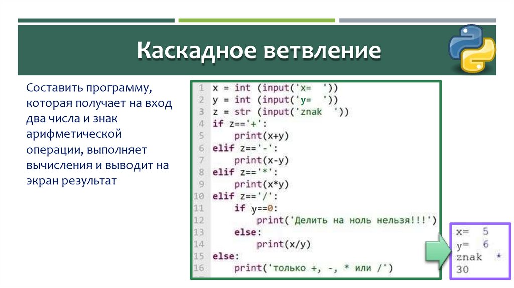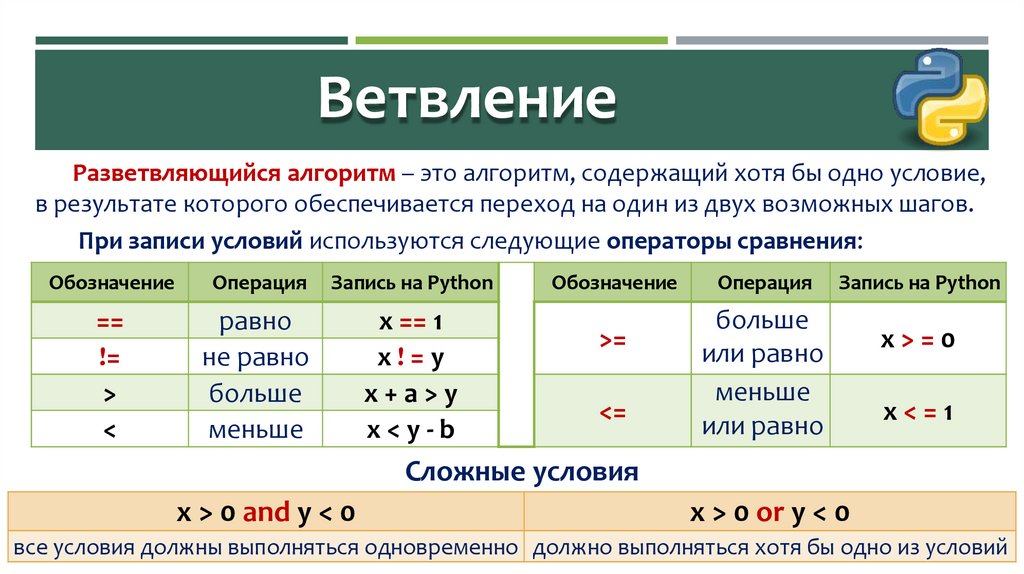 Ветвление. Условный переход. Сложные условия. Каскадное ветвление. Решение задач