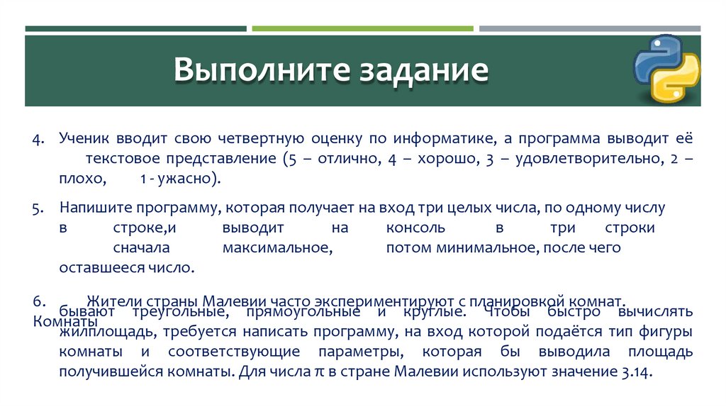 Выполните задание4. Ученик вводит свою четвертную оценку по информатике, а программа выводит её