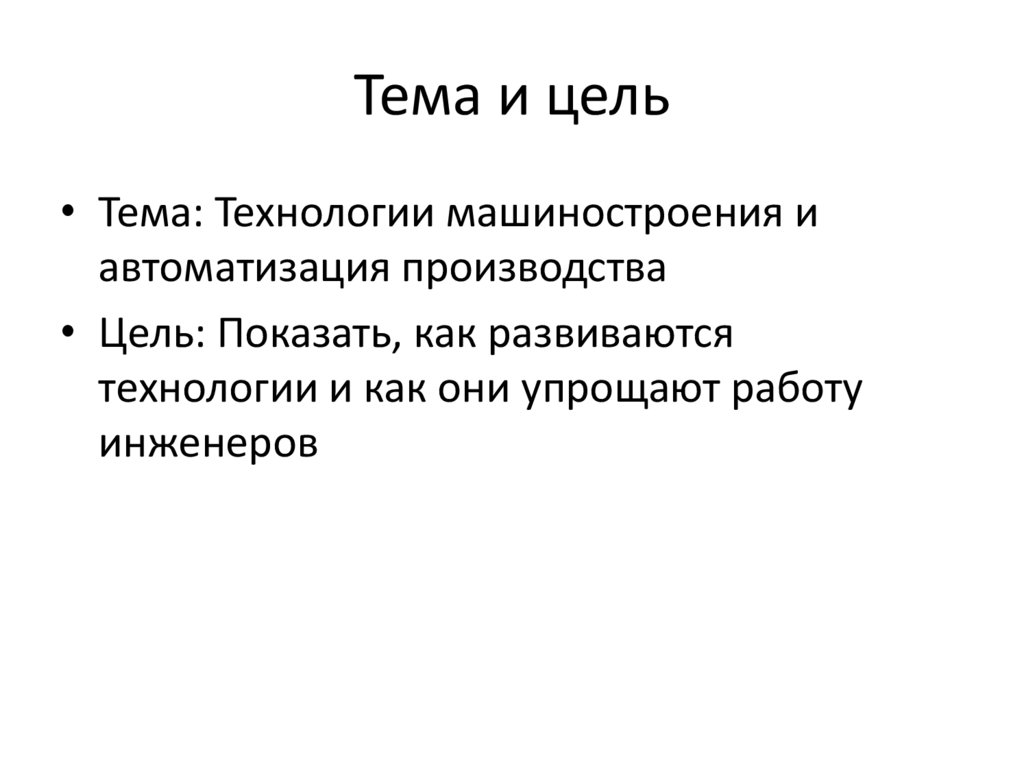 Тема и цель• Тема: Технологии машиностроения и
