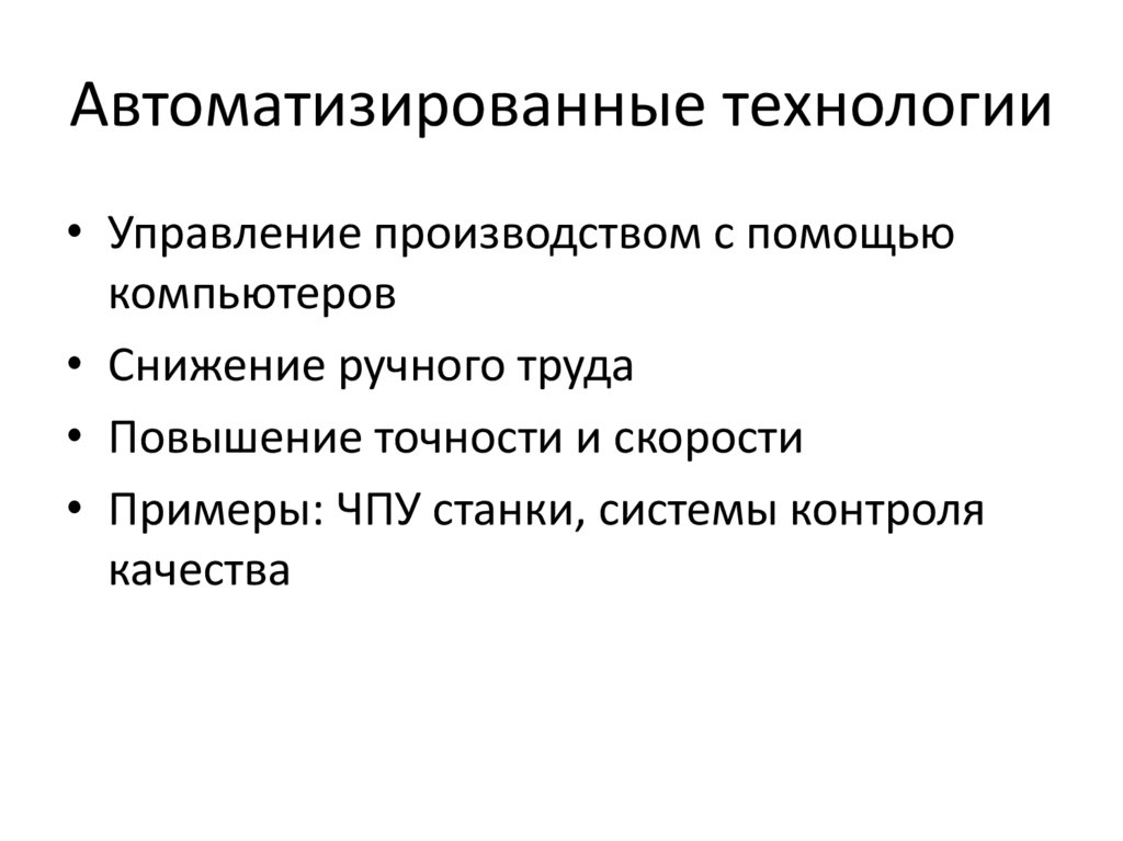 Автоматизированные технологии• Управление производством с помощью