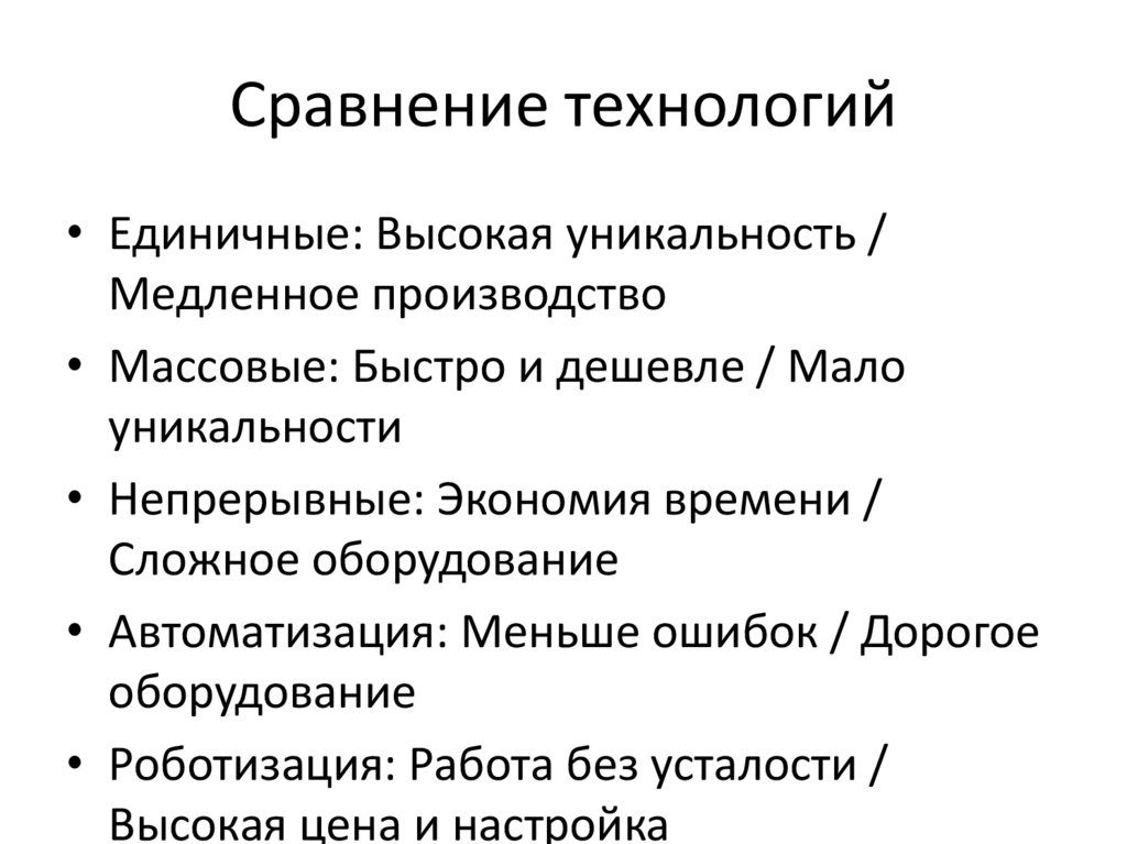 • Массовые и непрерывные технологии