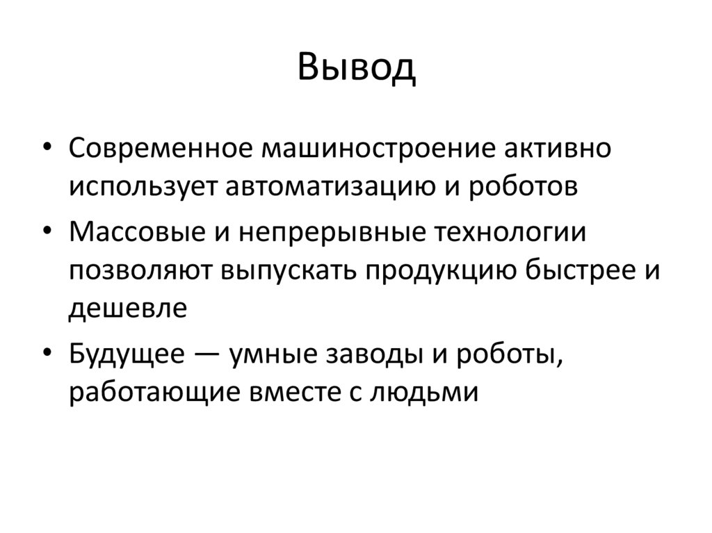 Вывод• Современное машиностроение активно