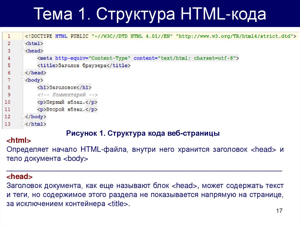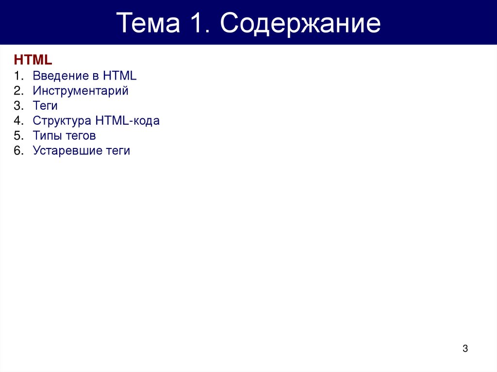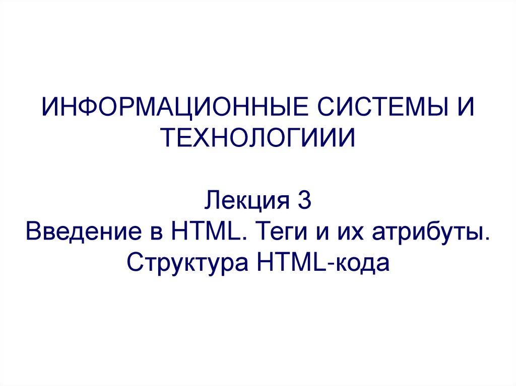 Лекция 3 Введение в HTML. Теги и их атрибуты. Структура HTML-кода