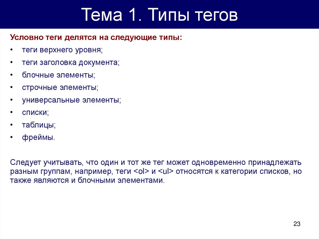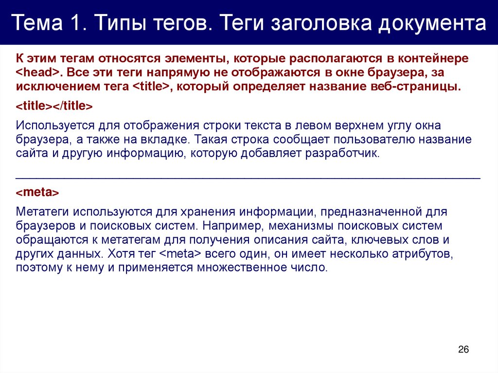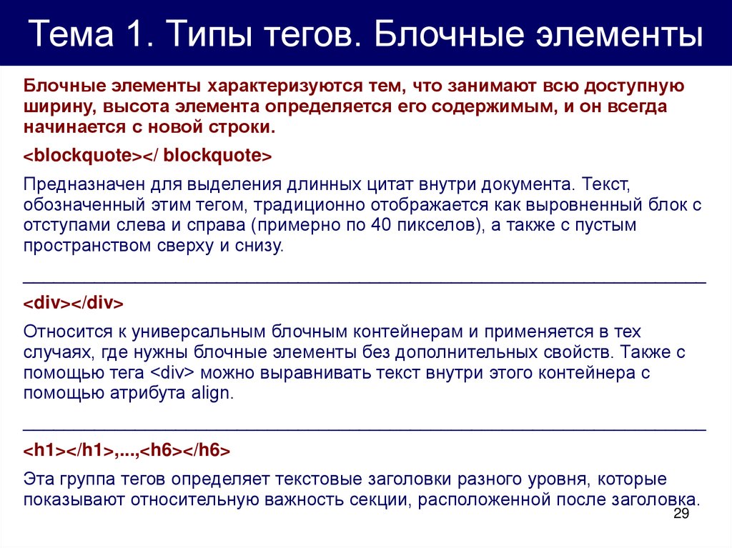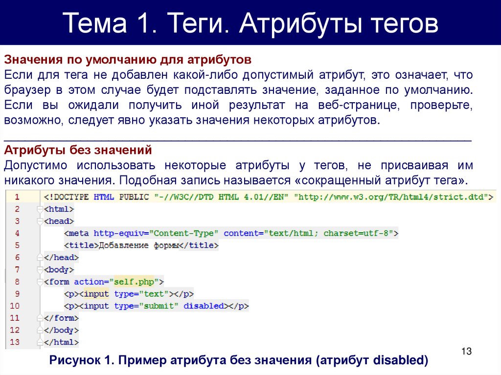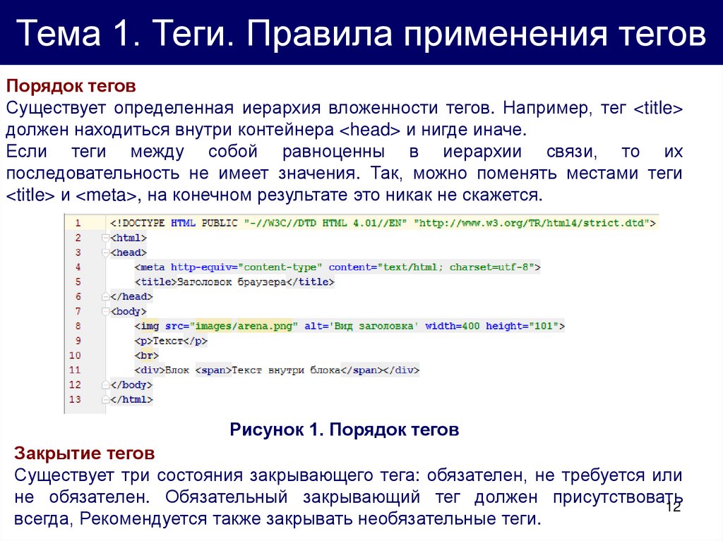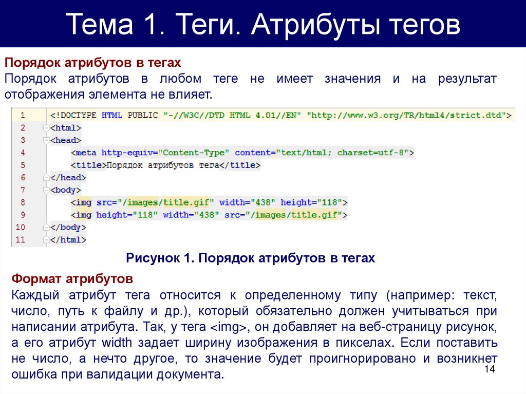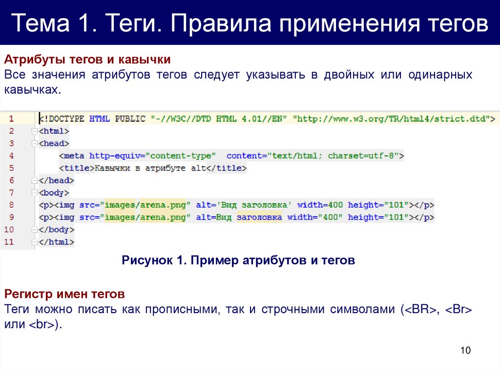 Тема 1. Теги. Правила применения теговАтрибуты тегов и кавычки
