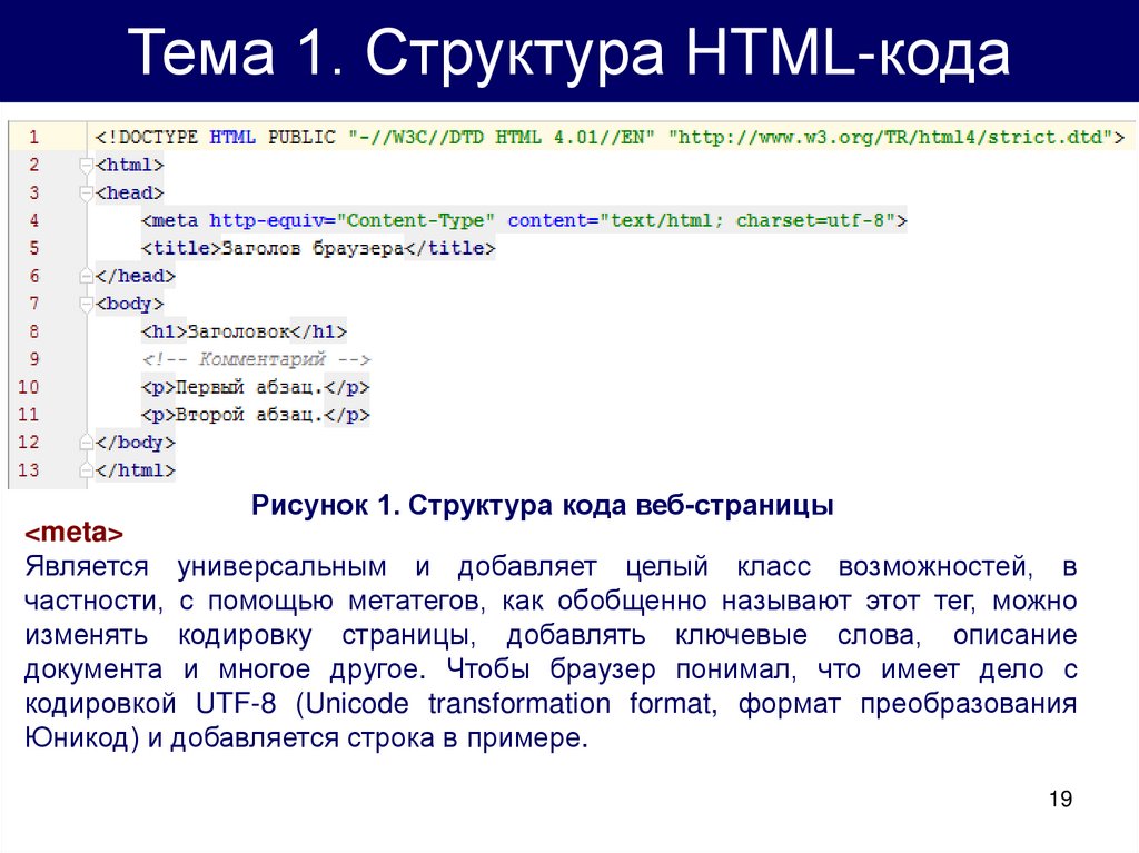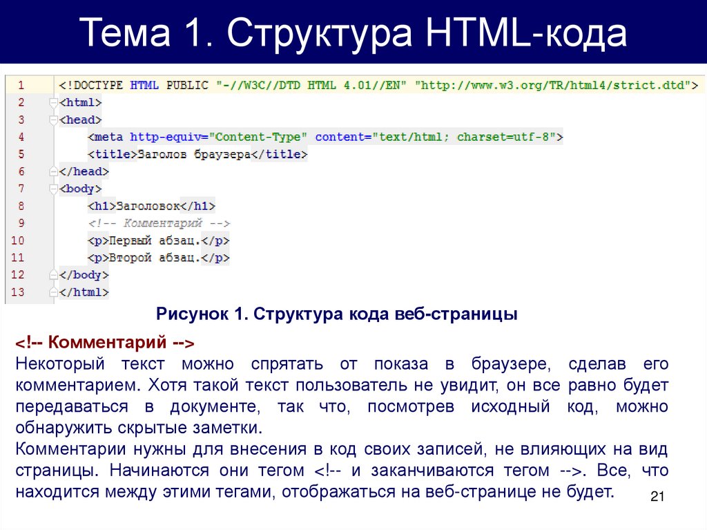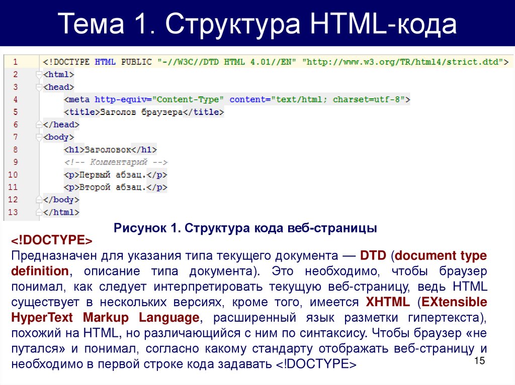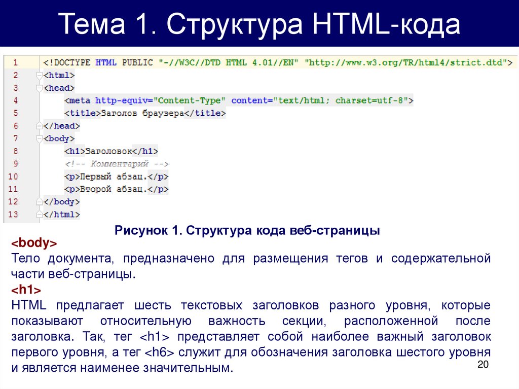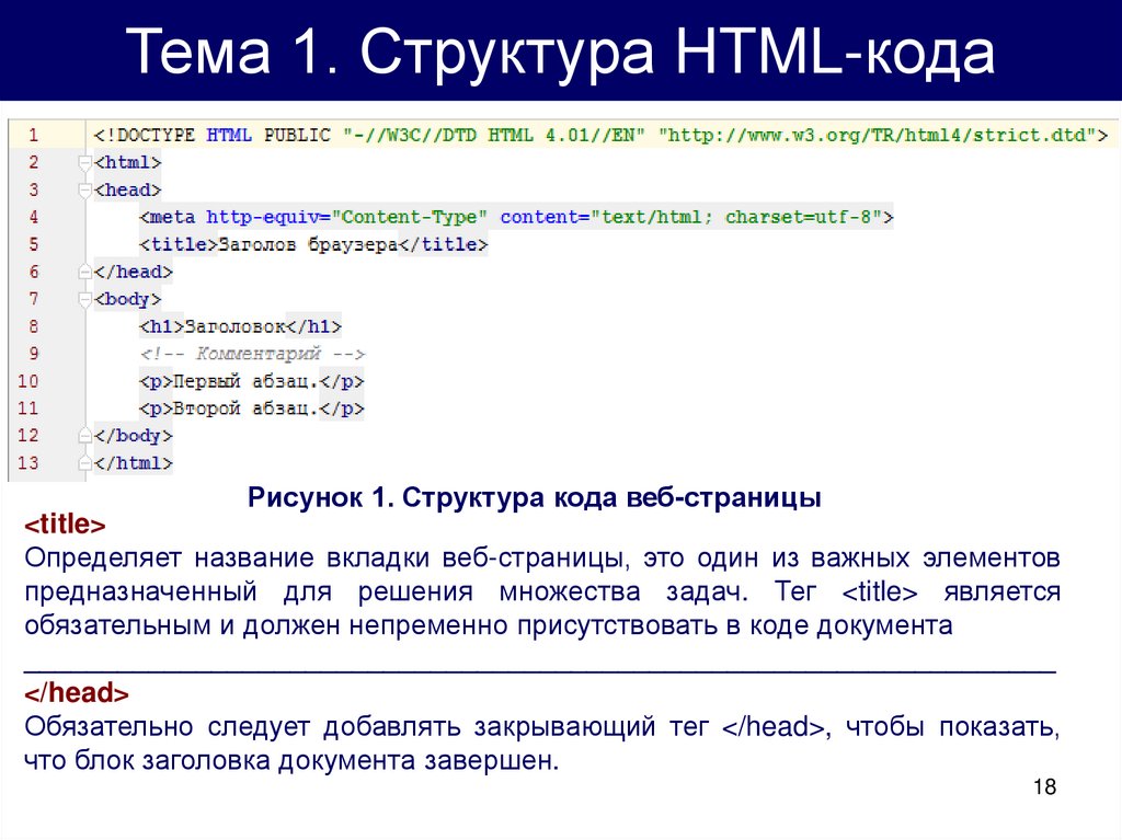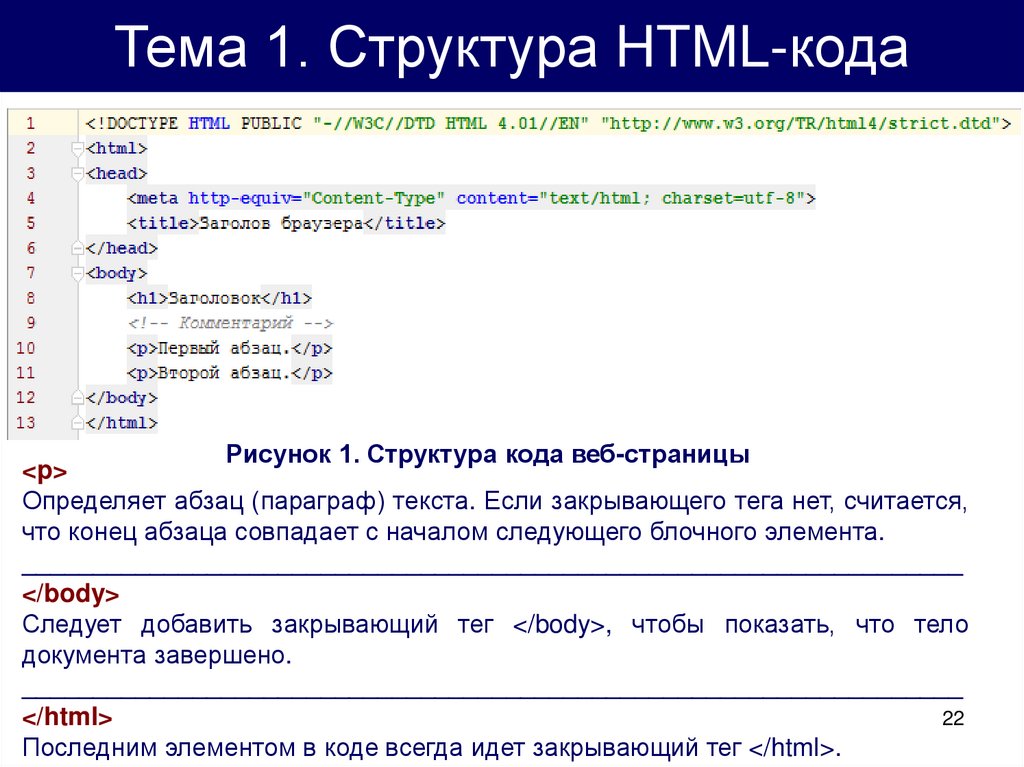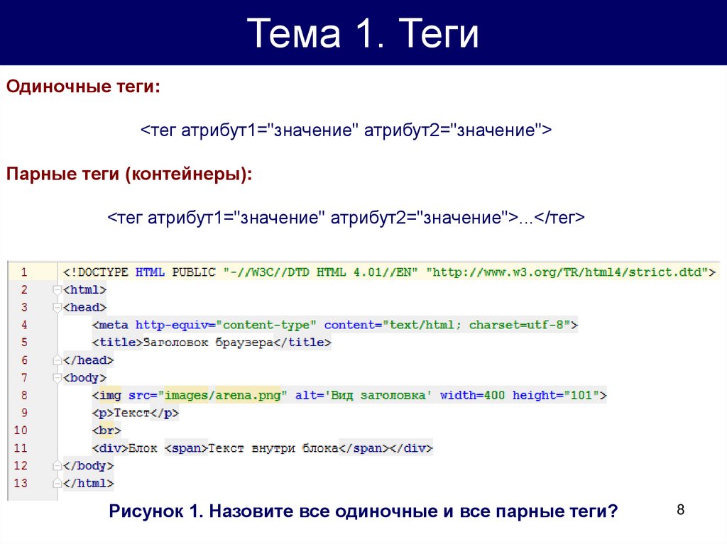 Рисунок 1. Назовите все одиночные и все парные теги?