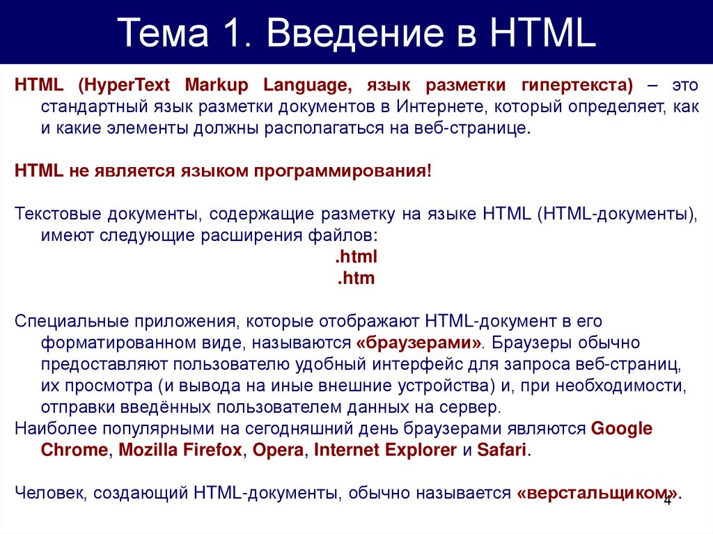 Тема 1. Введение в HTMLHTML (HyperText Markup Language, язык разметки гипертекста) – это