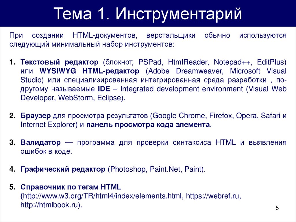Тема 1. ИнструментарийПри создании HTML-документов, верстальщики